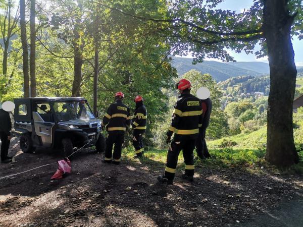 10. 12. 2023V 9:10 je jednotka povolána do Pece pod Sněžkou k nehodě vozidla, které hrozí pádem ze stráně. Na místo přijíždí šestikolka a průzkumem zjišťujeme vozidlo spadlé ze stráně, opřené o stromy s poškozením pravého boku. Vozidlo částečně zasahuje do komunikace. Bez úniku pohonných hmot, bez zranění. Na místě se nachází fréza Reform, kterou si zajistil majitel sám, ale ta nebyla schopna sama vozidlo vyprostit. Na místo si povoláváme traktor. Je použit ruční lanový naviják k jištění vozidla, traktor i fréza se snaží vozidlo vyprostit, dochází k poškození navijáku na fréze, ta poté odjíždí. Jedeme s CAS Man na místo události za účelem využití navijáku, dochází ale k nehodě. Na místo je k vyproštění naší CAS povolán vyprošťovací automobil ze stanice HZS Trutnov a bagr, který přijíždí především k pomoci s vyproštěním vozidla. Komunikace je posypána TS Pec pod Sněžkou a CAS pomocí vyprošťovacího automobilu zajištěna proti přecrácení a ve spolupráci s bagrem vyproštěna zpět na komunikaci. Za pomoci bagru, traktoru a ručního lanového navijáku je poté vozidlo vyproštěno zpět na komunikaci bez dalšího poškození a předáno majiteli.