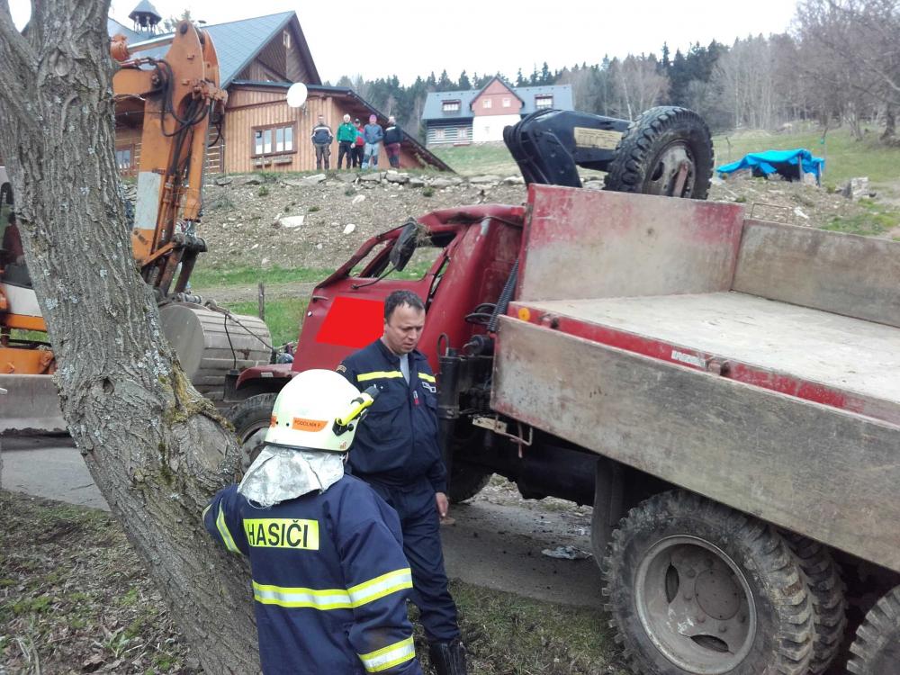| 25. 4. 2017 | 13: Převrácený nákladní automobil V 11:55 byl jednotce vyhlášen poplach – nehoda úklid, převrácený nákladní automobil, teče z něj nafta, auto převrácené na boku, průjezdná cesta s omezením, řidič je v pořádku. Při příjezdu jednotky na místo události byl řidič mimo vozidlo a bez zjevných známek poranění. Unikající provozní kapaliny byly částečně zasypány hlínou. Bylo provedeno zachytávání unikajících provozních kapalin a zasypání již uniklých sorbentem, k odpojení akumulátorů došlo již při převrácení vozidla. K převrácení vozidla zpět na kola byly použity dva bagry stavební firmy. Po odstranění vozidla mimo komunikaci, byl proveden ještě její úklid a znovu zasypání některých míst sorbentem, do nádob se podařilo zachytit asi 20 litrů unikajících provozních kapalin. Zúčastněné jednotky: JSDH Pec pod Sněžkou, HZS PS Trutnov |
