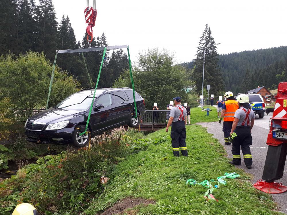 | 28. 4. 2017 | 15: Dopravní nehoda V 17:35 byl jednotce vyhlášen poplach – nehoda zranění, osobní automobil v řece zadkem, při vědomí, krvácí z hlavy. Při příjezdu jednotky na místo události je již řidič mimo vozidlo a tržnou ránu na hlavě mu ošetřují členové Horské služby. Pro lepší přístup do koryta řeky jsou použity nastavovací žebříky. Vozidlo je zajištěno proti dalšímu pohybu přivázáním k CAS 15 MAN a okolo vozidla je vytvořena provizorní norná stěna ze sorpčních hadů. U vozidla byla vypnuta zapalovací skříňka, autobaterii nebylo možné bezpečně odpojit. Řidič byl následně předán do péče zdravotnické záchranné služby, která jej odvezla k dalšímu vyšetření do nemocnice. Po příjezdu vyproš»ovacího automobilu bylo vozidlo vyzvednuto z koryta řeky. Zúčastněné jednotky: JSDH Pec pod Sněžkou, HZS PS Trutnov |
