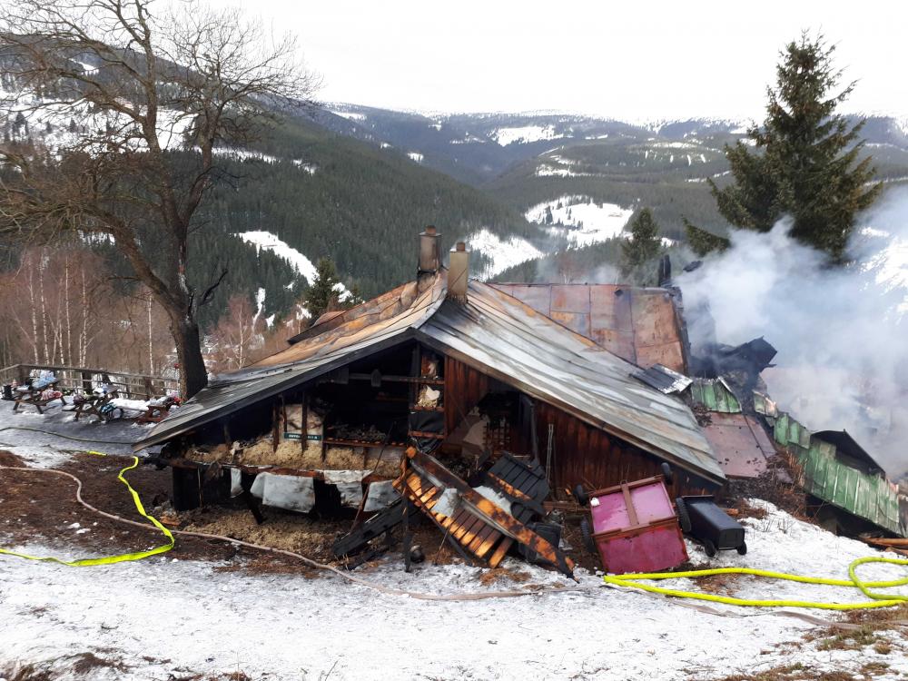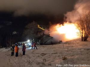 | 29. 12. 2015 | Požár stromu Dne 29. 12. byl v 17:18 vyhlášen poplach – požár, porost, hoří vyvrácený strom, první odbočka za Portášovými boudami vlevo je maštal, nad tím hoří. Uprostřed paseky nad maštalkou za Portáškami hořel kořenový bal starého vývratu. Požár byl uhašen pomocí 1 C proudu. Následně byla ještě prokopána půda v okolí vývratu, stržen drn a vše bylo ještě důkladně prolito vodou, aby nedošlo k opětovnému zahoření. Zúčastněné jednotky: JSDH Pec pod Sněžkou, HZS PS Trutnov |