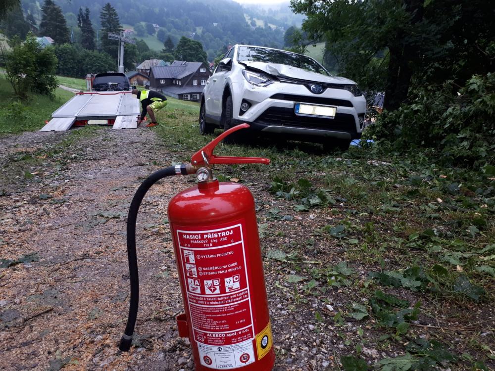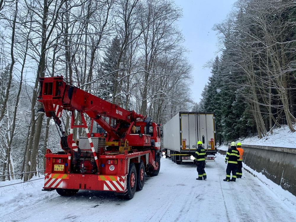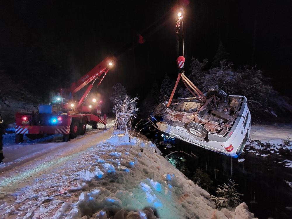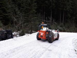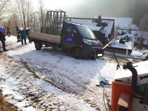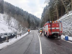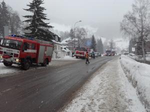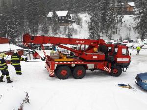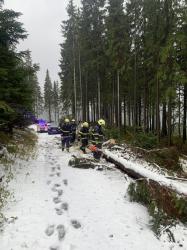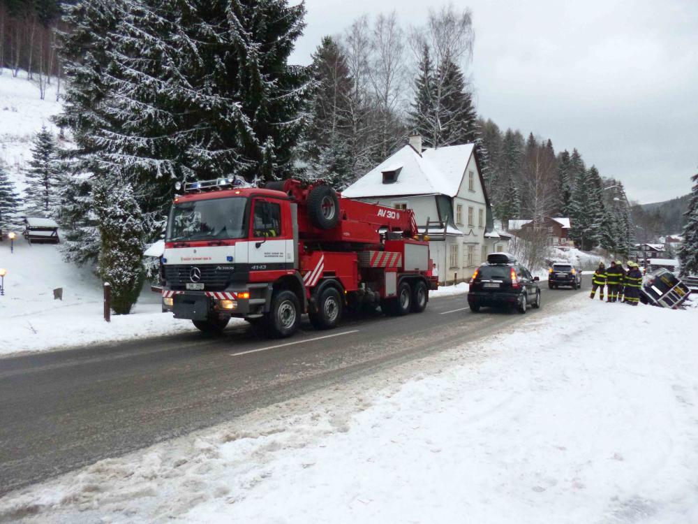 | 12. 1. 2016 | Vyproštění vozidla Po odklizení spadlého stromu přejíždíme k penzionu Bivoj, kde pod cestu spadlo osobní auto. Na místě je již technický automobil z PS Trutnov, který byl odvolán cestou ke spadlému stromu. K vyproštění vozidla byly použity oba navijáky umístněné na vozidlech, proti převrácení bylo vozidlo ještě jištěno dalším lanem. Zúčastněné jednotky: JSDH Pec pod Sněžkou, HZS PS Trutnov |