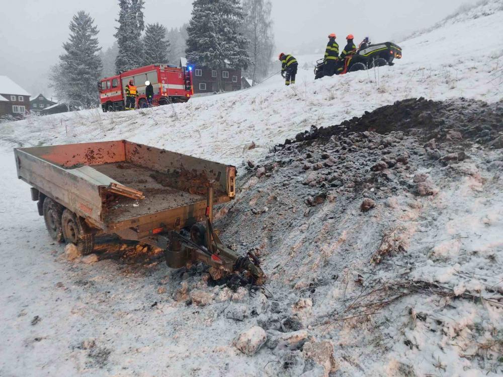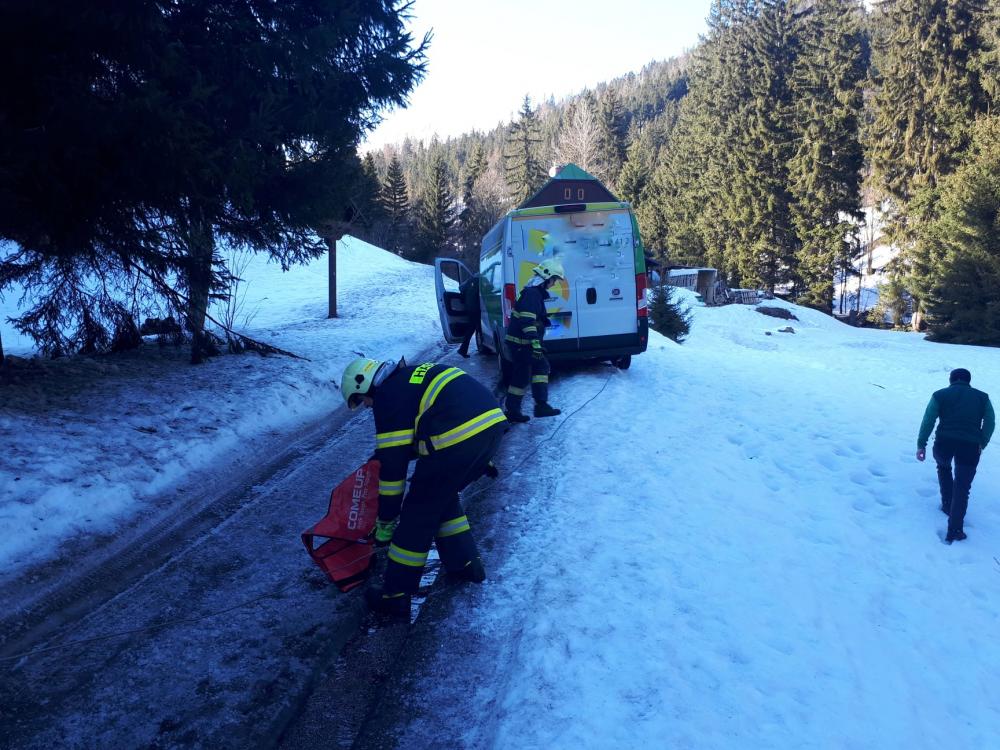 | 19. 11. 2015 | Vyproštění Dne 9. 11. byl v 19:48 vyhlášen poplach – nehoda, vyproštění, od boudy Jana dolu zimní cestou směrem k penzionu Kobr, 150 metrů od penzionu bílá dodávka. Vozidlo bylo přední částí pod cestou, hrozilo jeho sklouznutí do lesa. Vozidlo bylo zajištěno lanem a pak vytaženo zpět na cestu přes kladku pomocí navijáku umístněného na CAS 15 MAN.