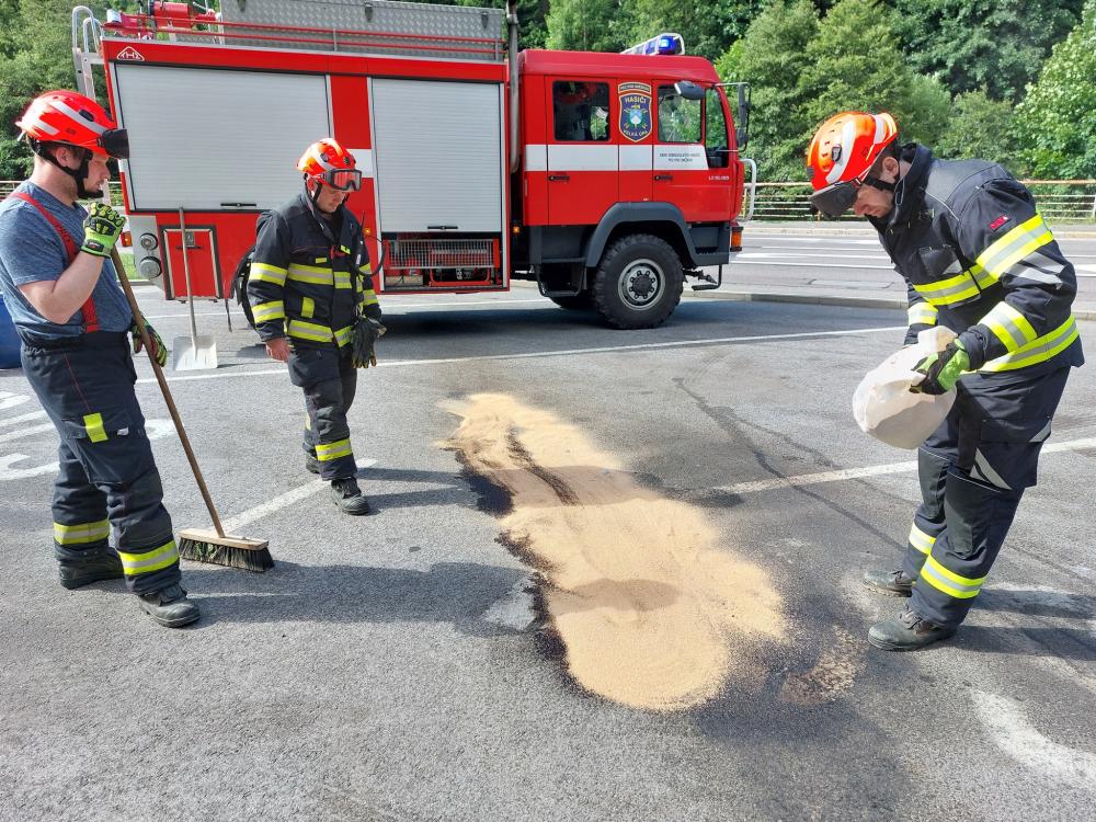 | 9. 9. 2025 | 35: Únik nebezpečné látky V 11:10 je jednotka povolána k úniku hydraulického oleje na komunikaci vedoucí do Modrého dolu. řidič vyvážecího prostředku ohraničil uniklý olej pilanami, čímž částečně zabránil dalšímu síření oleje. Uniklý olej jsme zasypali sorbentem. |