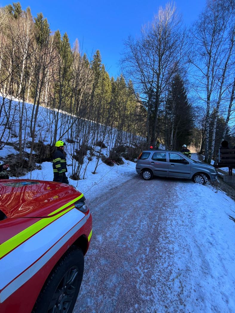 | 20. 3. 2025 | 16: Vyproštění vozidla V 15:49 je jednotka povolána do Pece pod Sněžkou k uvízlému automobilu na ledu. Na místě události byl osobní automobil levou zadní částí na kraji komunikace, Vozidlo jsme vytáhli zpět na komunikaci pomocí navyjáku na TA. Majitel s vozidlem pak odcouval mimo zledovatělý prostor. |