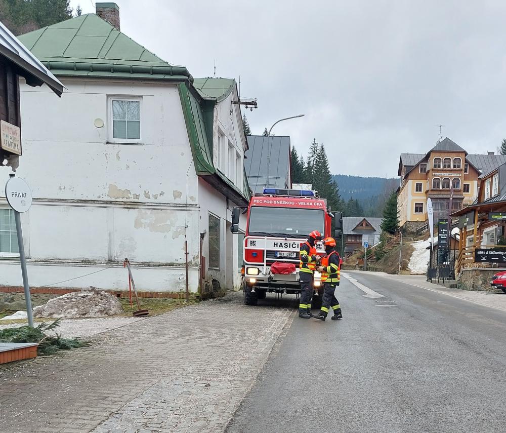 | 16. 1. 2016 | Spadlý strom Dne 16. 01. byl v 09:37 vyhlášen poplach – pomoc, nebezpečný stav, strom přes silnici na Lesní boudu. Strom byl spadlý přes místní komunikaci asi 150 metrů nad odbočkou k Čapkově chatě. Před příjezdem jednotky na místo, byl strom rozřezán jedním z místních boudařů, jednotka nezasahovala. Zúčastněné jednotky: JSDH Pec pod Sněžkou |