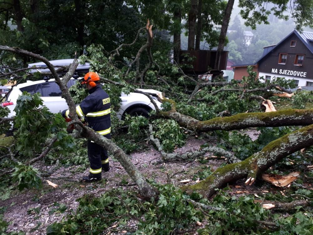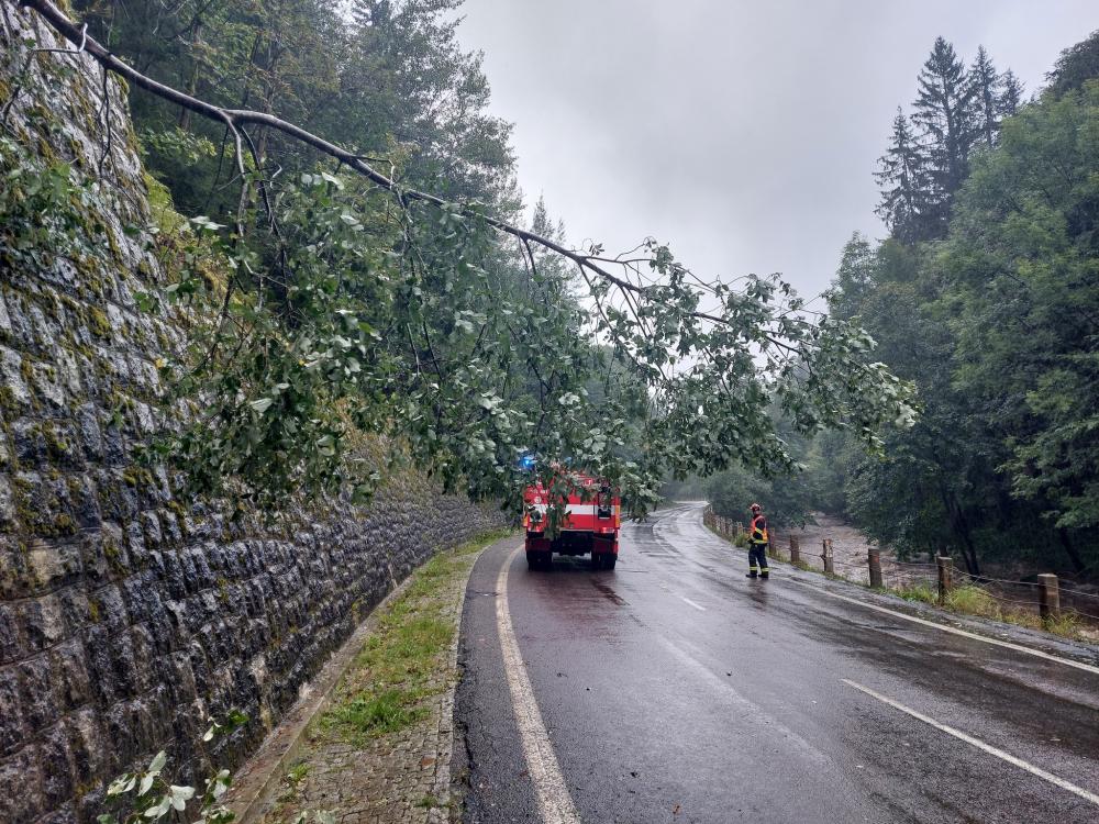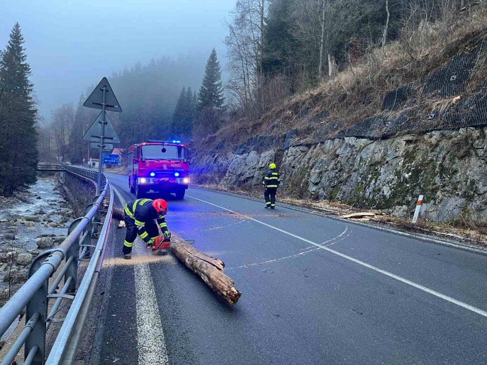 | 16. 8. 2015 | Spadlý strom Dne 15. 8. byl v 15:52 vyhlášen poplach – pomoc, překážka, strom přes silnici – odtáhli ho na bok, ale korunou zasahuje do vozovky, asi 2 km za Temným dolem. Koruna stromu byla rozřezána a odklizena mimo komunikaci. Zúčastněné jednotky: JSDH Pec pod Sněžkou