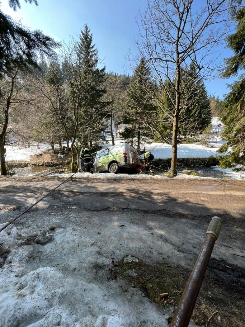 | 17. 12. 2015 | Nehoda Dne 16. 12. byl v 17:33 vyhlášen poplach – nehoda, uvolnění, dodávka v Úpě mezi Temným Dolem a Pecí, bez zranění, cca 1 km od Veselého výletu. Při příjezdu jednotky na místo události byl již řidič mimo vozidlo. Jednotka provedla zasypání uniklých provozních kapalin sorbentem, kvůli nebezpečí pádu vozidla do Úpy, nebyla odpojena autobaterie. K vyproštění vozidla byl ze stanice HZS v Trutnově povolán automobilový jeřáb. V průběhu přípravných vyproš»ovacích prací byla operačním důstojníkem povolána ještě jednotka z Horního Maršova, která dostala za úkol postavit níže na řece nornou stěnu pro případ úniku provozních kapalin během vyproš»ování vozidla. Po zajištění vozidla, bylo odstřiženo zábradlí a vozidlo vyzvednuto jeřábem zpět na komunikaci. K úniku provozních kapalin nedošlo. Zúčastněné jednotky: JSDH Pec pod Sněžkou, HZS PS Trutnov, JSDH Horní Maršov |