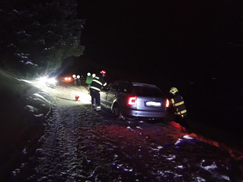 | 15. 12. 2016 | Vyproštění vozidla V 22:02 byl jednotce vyhlášen poplach – pomoc, nebezpečný stav, nad Chatou Betyna asi 100 metrů. Jednalo se o osobní automobil, kterému se nepodařilo na zledovatělé komunikaci vyjet kopec za Betynou a auto nebezpečně sklouzávalo mimo komunikaci. Vozidlo jsme pomocí tirforu vytáhli zpět na komunikaci. Protože nebylo technicky možné vozidlo bezpečně spustit až pod kopec, bylo odstaveno mimo komunikaci pod vrcholem stoupání. Řidiči bylo doporučeno svezení vozidla druhý den za použití sněhových řetězů. Zúčastněné jednotky: JSDH Pec pod Sněžkou, HZS PS Trutnov |