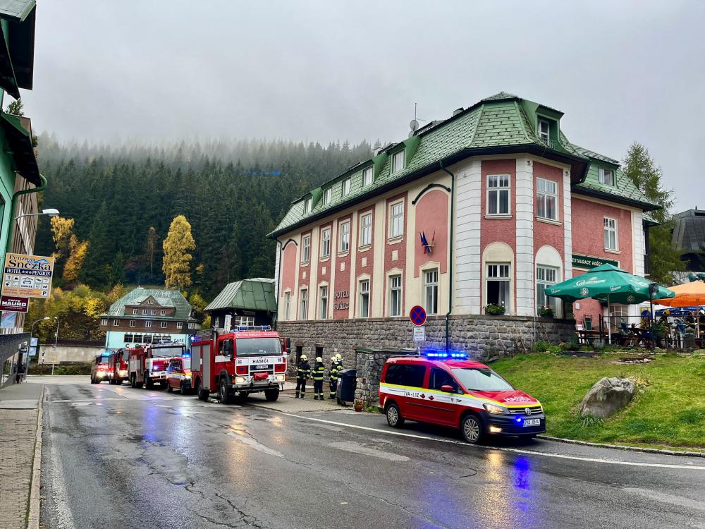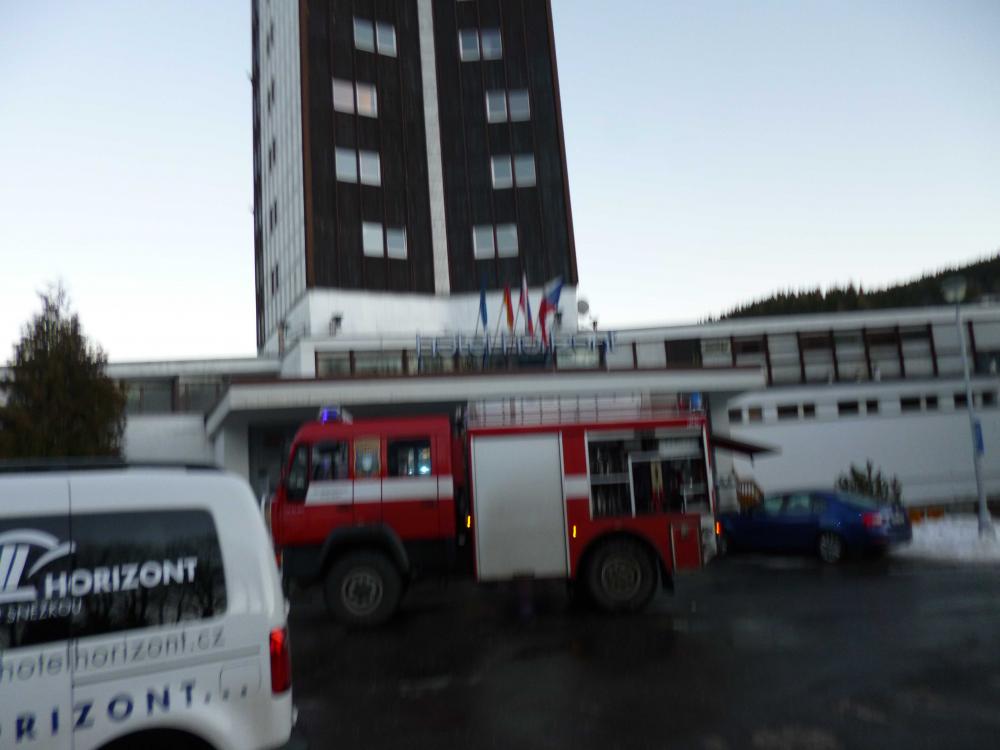 | 28. 9. 2015 | Nebezpečný stav v kotelně hotelu Horizont Dne 27. 9. byl v 07:27 vyhlášen poplach – pomoc nebezpečný stav, hotel horizont, plynová kotelna plná kouře, plyn i el. vypnuty. V kotelně hořely odpadky v odpadkovém koši, bylo uhašeno před příjezdem jednotky. Jednotka provedla odvětrání místností pomocí přetlakové ventilace. Zúčastněné jednotky: JSDH Pec pod Sněžkou, HZS PS Trutnov