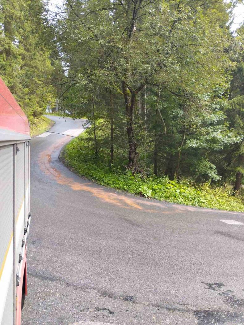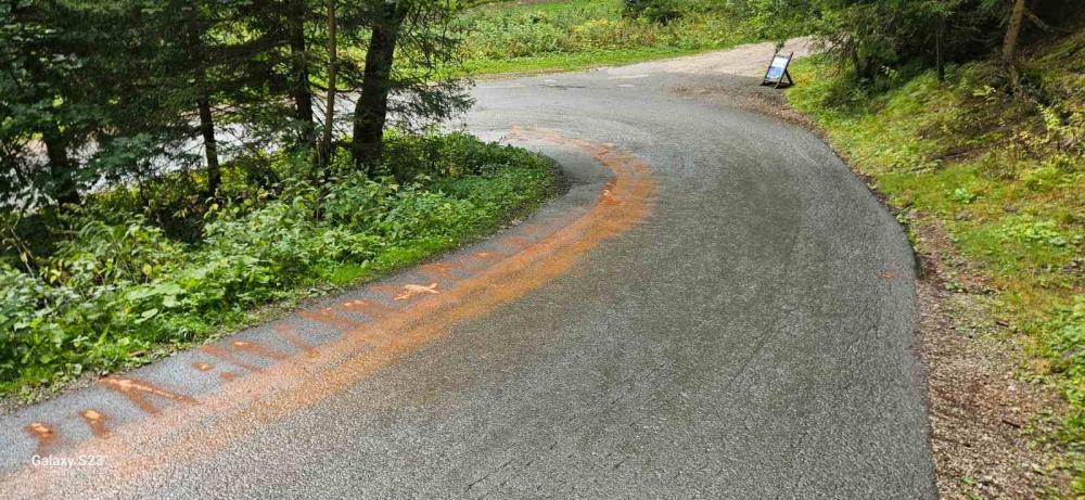 V 12:49 je jednotka povolána k úniku nebezpečné látky na cestě vedoucí z Velké Úpy směrem na Portášky. Na místě je komunikace znečištená únikem provozních kapalin v délce cca 120 metrů. Uniklou látku jsme zasypali sorbentem.