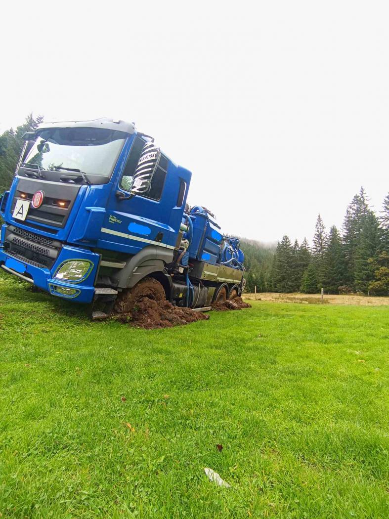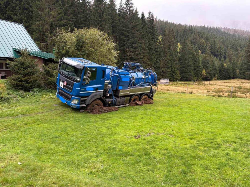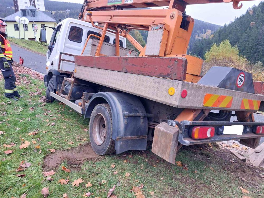 V 10:20 je jednotka povolána do Pece pod Sněžkou k nákladnímu automobilu hrozícímu převrácení. Na místě byl nákladní automobil po nápravy zapadlý v rozměklé louce. Nejdříve bylo nutné vozidlo odlehčit, náklad byl přečerpán zpět do septiku. Následně byla vyčerpána i voda. Z pod kol jsme odházeli vrstvu bláta a vozidlo nakonec bylo schopné z kolejí samo vyjet.