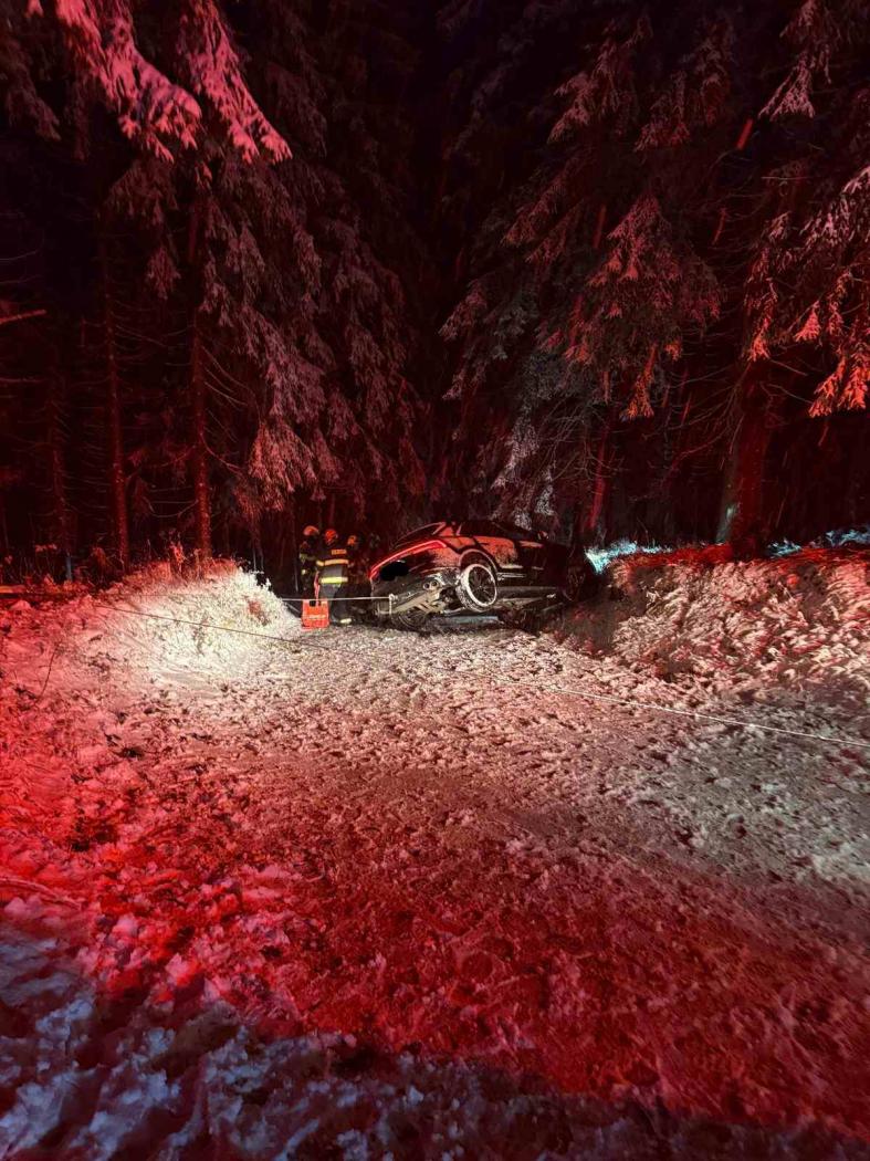 Dne 01. 01. byl v 16:37 vyhlášen poplach –nehoda, uvolnění, Velká Úpa, Bouda na Cestě. Na místě události bylo zjištěno MPV, ktreré se dalo na zledovatělé cestě samovolně do pohybu a skončilo asi 100 metrů pod cestou v řadě smrků. Protože ani jedno hasičské vozidlo nedisponovalo dostatečně silným lanovým navijákem, který by vozidlo bezpečně vytáhl zpět na komunikaci, z vozidla neunikaly žádné provozní kapaliny a nebránilo provozu na komunikaci, bylo rozhodnuto velitelem zásahu o odložení vyproštení automobilu na druhý den ráno. Ze stanice HZS v Trutnově bude posláno vozidlo se silnějším navijákem.