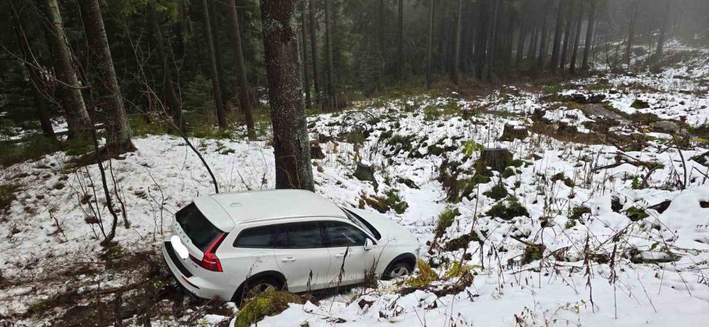 Dne 27. 11. byl v 16:22 vyhlášen poplach – nehoda, uvolnění, auto mimo solnici, vytýká olej, naražená vana, odbočka na Hnědý vrch, dále odbočka hotel Energetik. Vozidlo skončilo mezi stromy s poškozenou přední nápravou, únik provozních kapalin se nepotvrdil. Jednotka automobil vytáhla zpět na komunikaci pomocí navijáku umístněném na DA Mazda a směrové kladky. Protože vozidlo bylo nepojízdné, bylo odstaveno u kraje komunikace, aby nebránilo dalšímu provozu. Na vozidle byly letní pneumatiky.