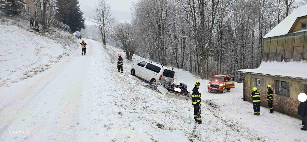 | 19. 11. 2025 | 47: Technická pomoc V 15:29 je jednotka povolána do Pece pod Sněžkou, kde došlo k uvíznutí automobilu na ledu v prudkém kopci. Hrozil pád vozidla do lesa. Na místě jsme zajistili vozidlo proti pohybu a komunikaci jsme posypaly Ekogritem. Automobil poté bezpečně sjíždí pod kopec mimo zmrzlou komunikaci. |