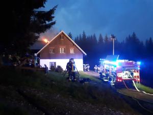 | 22. 6. 2017 | 19: Požár Horní Malá Úpa V 18:10 byl jednotce vyhlášen poplach – požár nízké budovy, blesk - hoří střecha Horní Malá úpa. Při příjezdu na místo události zde již zasahuje místní jednotka, které se podařilo požár střechy lokalizovat. Jejich C proud je pak vystřídán vysokotlakým vedením z naší cisterny. Pro úplnou likvidaci požáru bylo nutné část střechy rozebrat. Zúčastněné jednotky: JSDH Pec pod Sněžkou, Malá Úpa, Horní Maršov, Svoboda nad Úpou, Mladé Buky, HZS PS Trutnov |