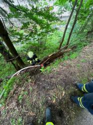 | 29. 7. 2025 | 30: Dopravní nehoda V 8:57 je jednotka povolána k dopravní nehodě nákladního automobilu směr Horní Malá Úpa. Na místě je zjištěn nákladní automobil mimo komunikaci opřený o strom. Událost je bez úniku provozních kapalin a bez zranění. Ve spolupráci s HZS je náklaďák vyproštěn za pomoci lanových navijáků na CAS a ručního lanového navijáku zpět na komunikaci bez dalšího poškození. Vzhledem k omezenému prostoru byl jako kotvící bod využit technický automobil a přilehlý pařez. |