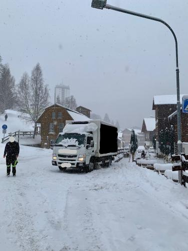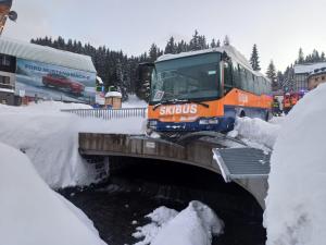 | 8. 1. 2025 | 2: Uvolnění komunikace Ve 09:37 je jednotka povolána do Pece pod sněžkou, kde došlo na kluzké vozovce k uvíznutí dvou skibusů, které blokují provoz. Na místě je zjištěn skibus SOR CN 12 opřený o menší skibus Mercedes Sprinter v úzkém průjezdu. Pomocí lopat upravujeme prostor pod koli menšího skibusu, abychom ho mohli posunout do boku. Větší skibus je zajištěn proti pohybu. Využíváme nabídku majitele reformu s pomocí při vyproš»ování a menší skibus je pak Reformem odtažen bez poškození. Po dobu vyproš»ovacích prací je komunikace uzavřena Policí ČR. |