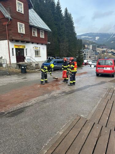 | 10. 9. 2015 | Únik nebezpečných látek Dne 7. 9. byl v 13:06 vyhlášen poplach – únik nebezpečných látek, na silnici olejová skvrna - 100 m, spodní stanice vleku Javor – směrem ke spodní stanici lanovky na Hnědý vrch. Olej byl vyteklý na silnici od Farinek zhruba po odbočku na Severku. Jednotka provedla zasypání sorbentem. Zúčastněné jednotky: JSDH Pec pod Sněžkou, HZS PS Trutnov