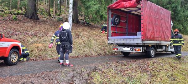 | 8. 10. 2025 | 40: Vyproštění vozidla V 10:20 je jednotka povolána do Pece pod Sněžkou k nákladnímu automobilu hrozícímu převrácení. Na místě byl nákladní automobil po nápravy zapadlý v rozměklé louce. Nejdříve bylo nutné vozidlo odlehčit, náklad byl přečerpán zpět do septiku. Následně byla vyčerpána i voda. Z pod kol jsme odházeli vrstvu bláta a vozidlo nakonec bylo schopné z kolejí samo vyjet. Cestou na místo události došlo k poškození naší CAS, kdy bylo o kámen hned vedle cesty proraženo pravé přední kolo. |