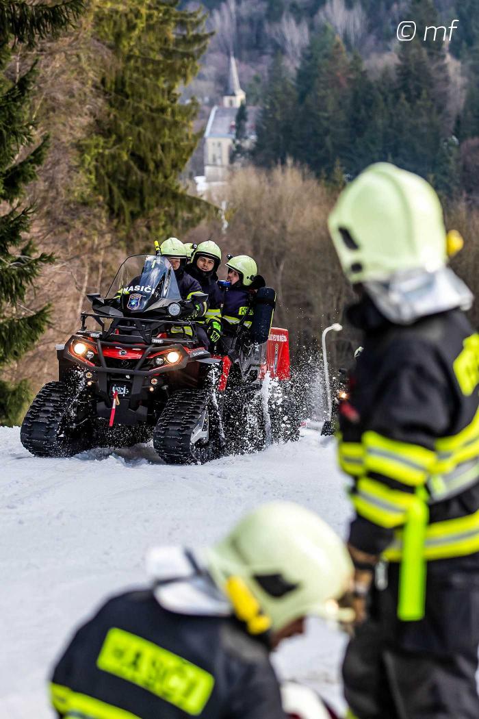 | 7. 2. 2025 | 7: Dopravní nehoda V 10:27 je jednotka povolána do Velké Úpy k nahlášenému pádu osobního automobilu do řeky po dopravní nehodě s vyproštěním osoby uvnitř. Při příjezdu jednotky na místo je již zraněná osoba mimo vozidlo na břehu řeky, z vozidla osobu vyprostili kolemjedoucí řidiči. Na místě již podávají první pomoc členové HS a ZZS. Do koryta řeky sestavujeme žebřík a pomáháme s fixací zraněné osoby do vakuové matrace. Poté pomáháme s transportem osoby z koryta řeky k vozu ZZS za využití navijáku čtyřkolky HS. Na vozidle jsou učiněna protipožární opatření a kolem vozidla jsou umístěny sorpční hadi pro případ úniku pohonných hmot při vyzvedávání vozidla. Po vyzdvižení vozidla vyčkáváme do příjezdu odtahové služby. Po dobu zásahu asistujeme s usměrňováním provozu. |